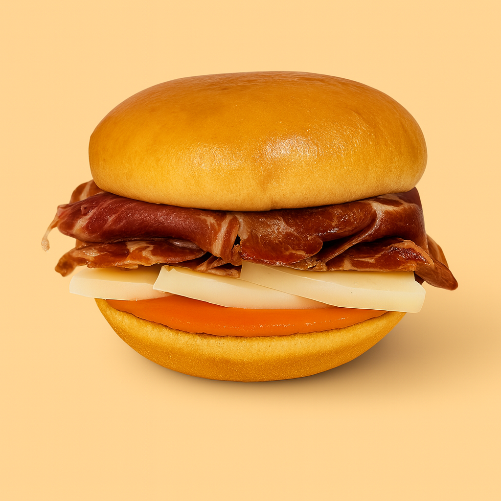 Jamón ibérico, queso semicurado y un toque de salmorejo cremoso. Iberi Killa delinque con arte.